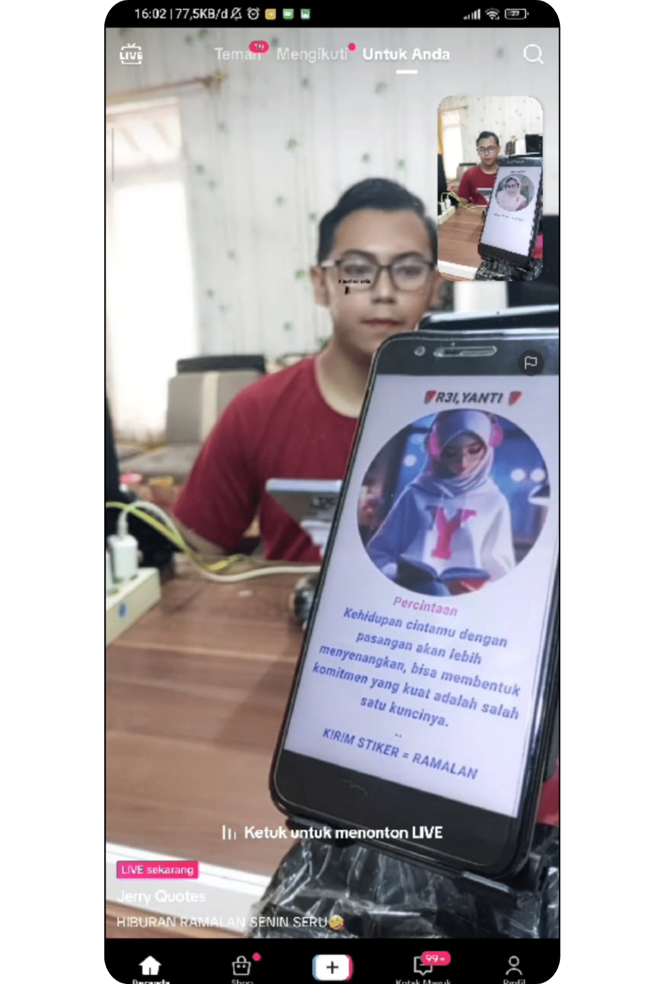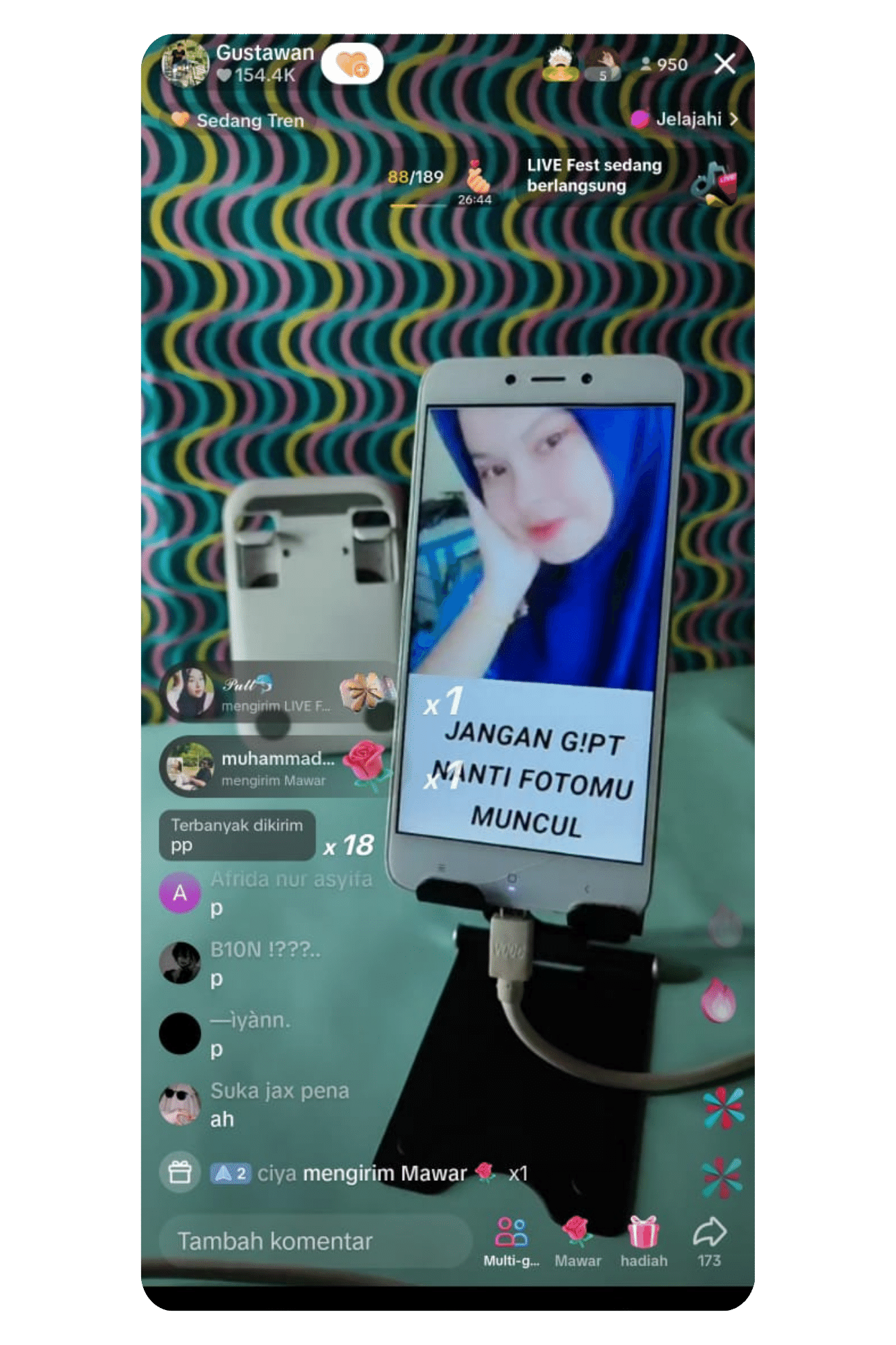 Kamu harus live setiap hari minimal sehari 2 kali dengan durasi panjang minimal 3 jam, lakukan di jam yang sama dan konsisten selama 1 minggu.