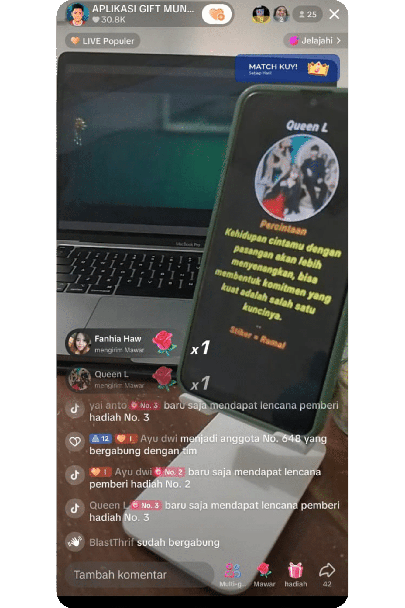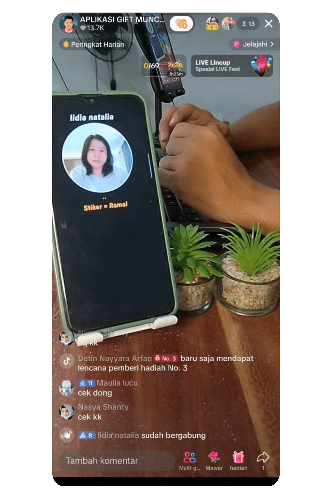 Akun tiktok kamu harus sudah bisa LIVE, dan aplikasi ini dimainkan di 2 perangkat