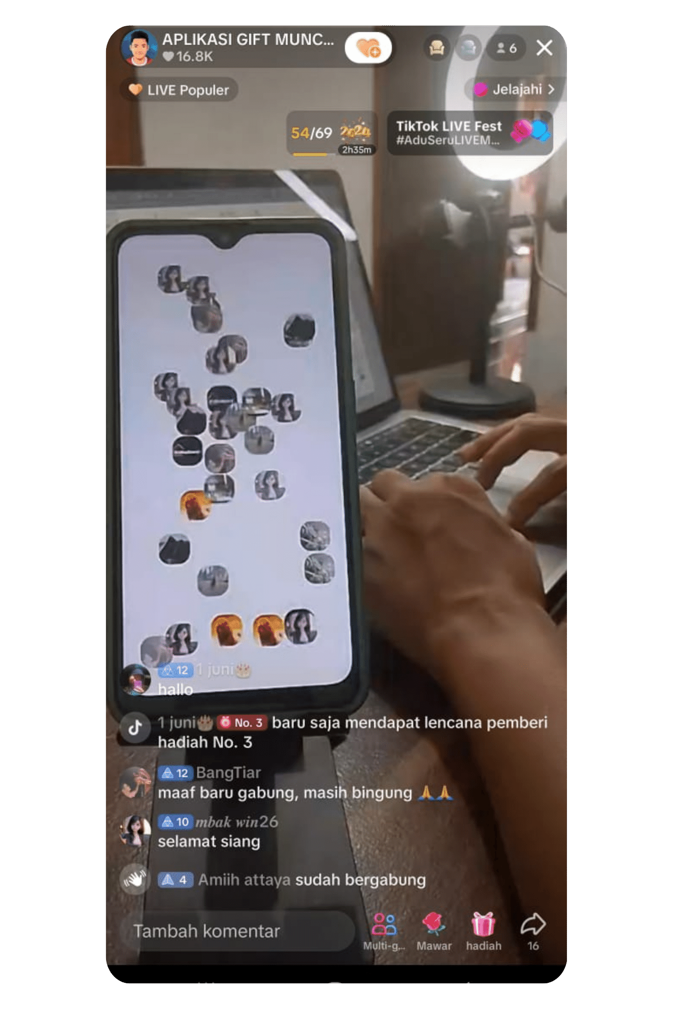 Akun tiktok kamu harus sudah bisa LIVE, dan aplikasi ini dimainkan di 2 perangkat